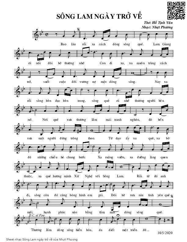 Nhựt Phương Bao lâu rồi xa cách dòng sông quê Lam Giang ơi nối đôi bờ thương nhớ [PDF] [Sheet] [Lyrics] [Mp4/Midi]