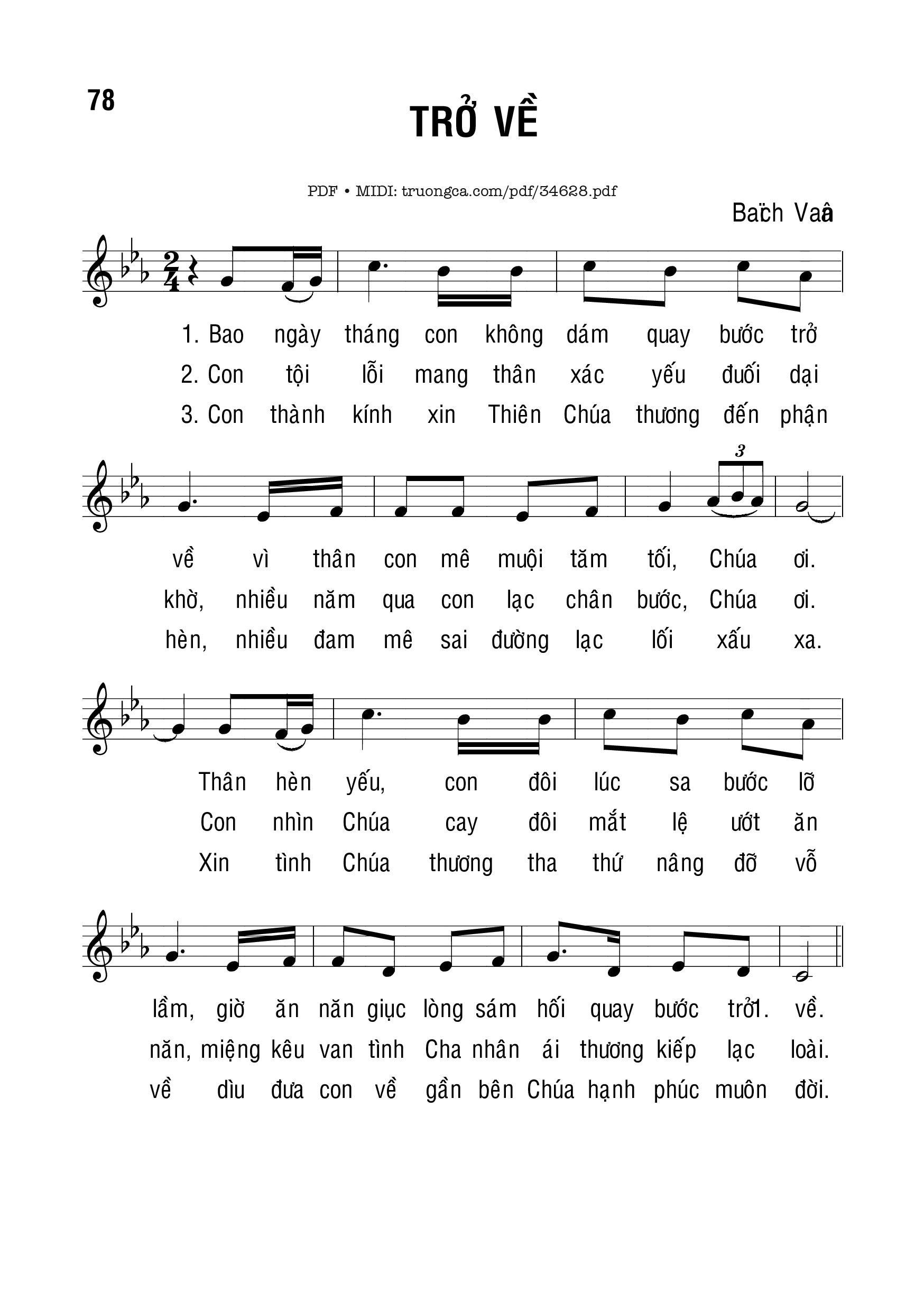 Điệp khúc: Dẫu con ngàn tội lỗi, Chúa vẫn chờ con quay bước trở về Chúa rộng lượng thứ tha dù tội con đỏ như son. Hứa trở về bên Chúa thú hết tội khiên đời hết ưu phiền. Chúa rộng lượng thứ tha để con biết kính sợ Ngài.