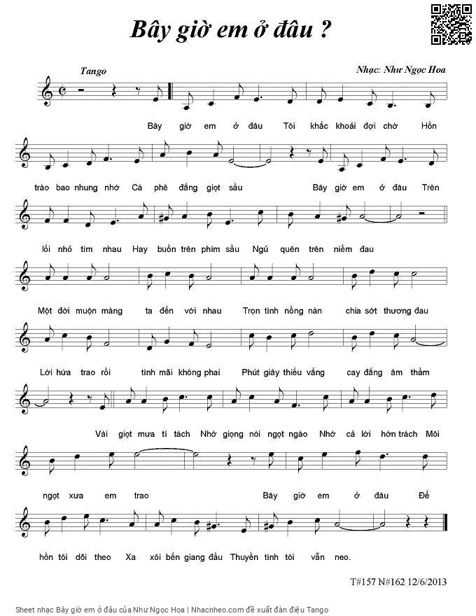 Như Ngọc Hoa Bây giờ em ở đâu tôi khắc khoải đợi chờ [PDF] [Sheet] [Lyrics] [Mp4/Midi]