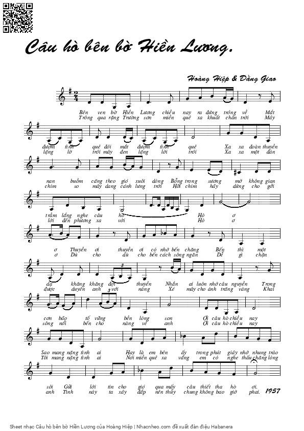 Hoàng Hiệp Bên ven bờ Hiền Lương chiều nay ra đứng trông về [PDF] [Sheet] [Lyrics] [Mp4/Midi]