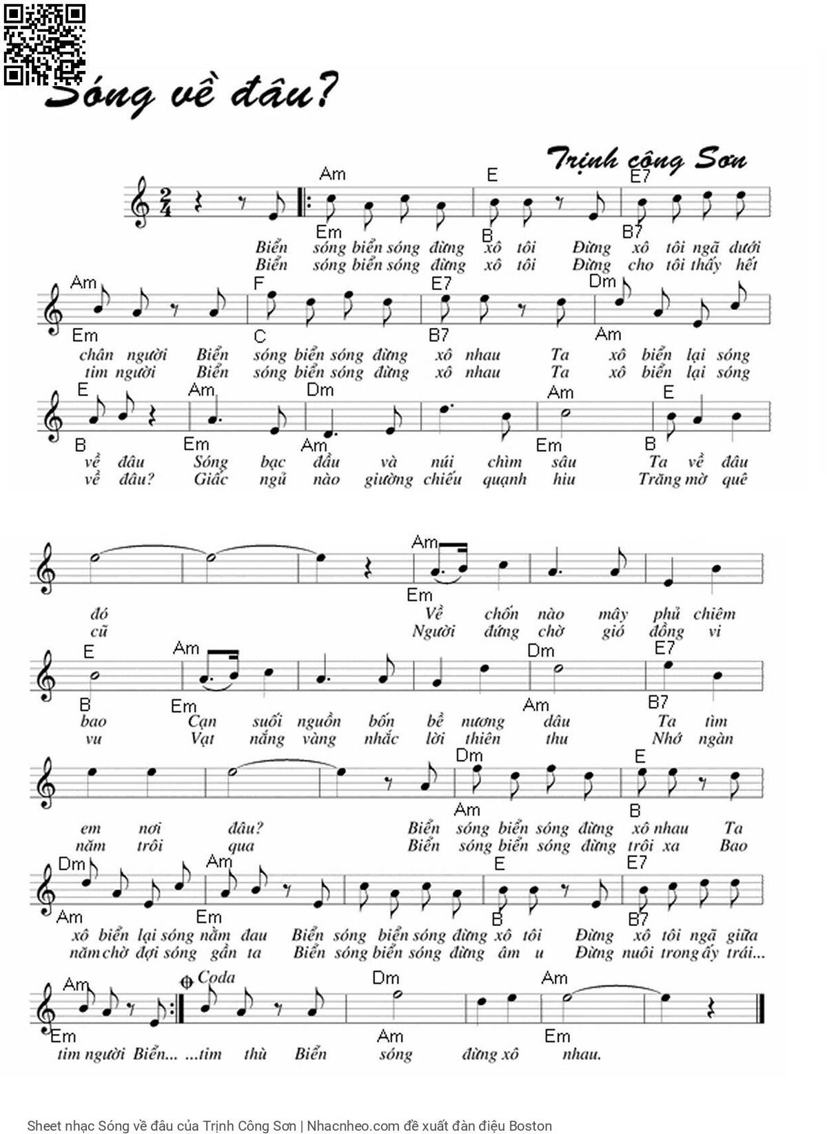 Trịnh Công Sơn Biển sóng biển sóng đừng xô tôi Đừng xô tôi ngã dưới chân người [PDF] [Sheet] [Lyrics] [Mp4/Midi]