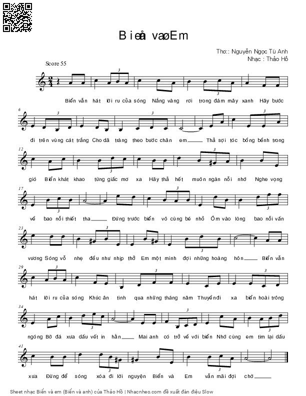 Thảo Hồ Biển vẫn hát lời ru của sóng Nắng vàng rơi trong đám mây xanh [PDF] [Sheet] [Lyrics] [Mp4/Midi]