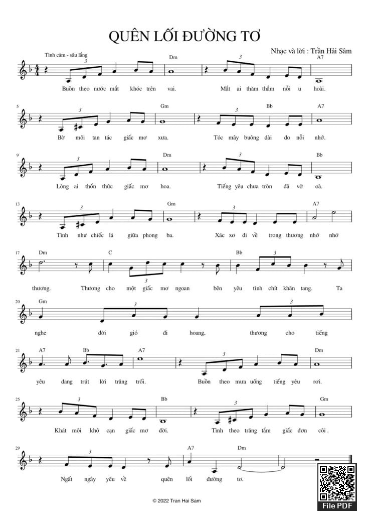 Trần Hải Sâm Buồn theo nước mắt khóc trên vai Mắt ai thăm thẳm nỗi u hoài [PDF] [Sheet] [Lyrics] [Mp4/Midi]