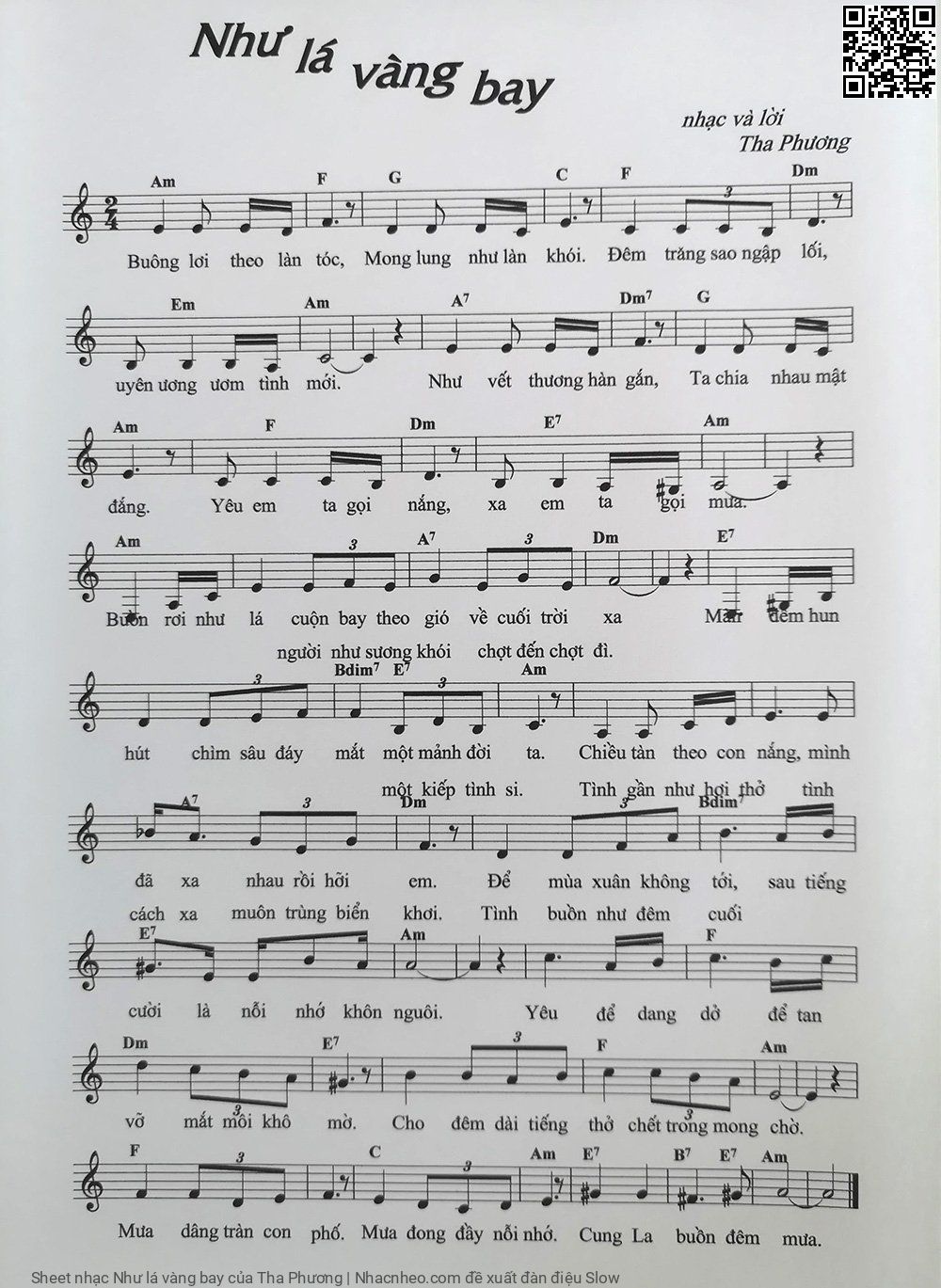 Tha Phương Buông lơi theo làn tóc Mông lung như làn khói [PDF] [Sheet] [Lyrics] [Mp4/Midi]