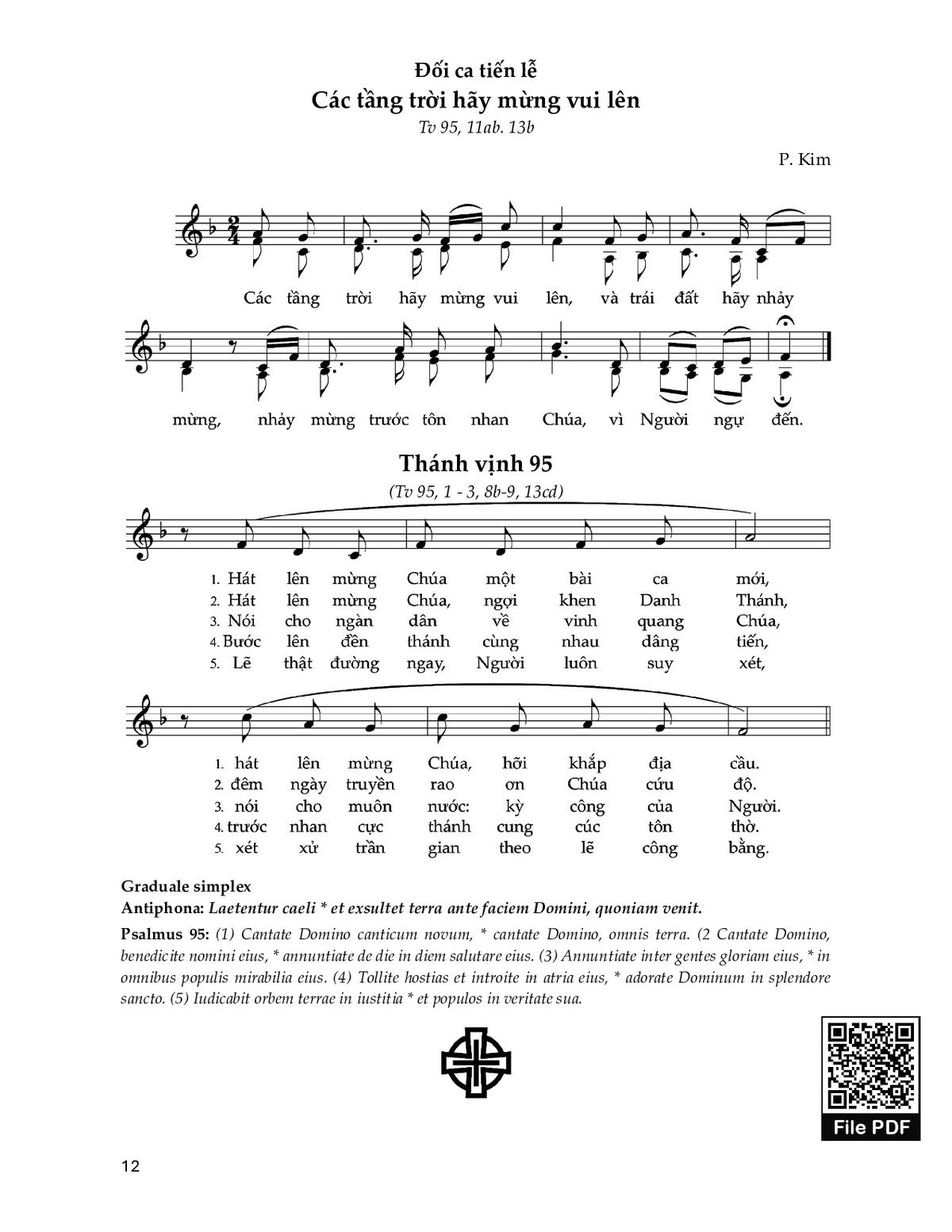 Đáp ca: Các tầng trời hãy mừng vui lên, và trái đất hãy nhảy mừng. Nhảy mừng trước tôn nhan Chúa, vì Người ngự đến.