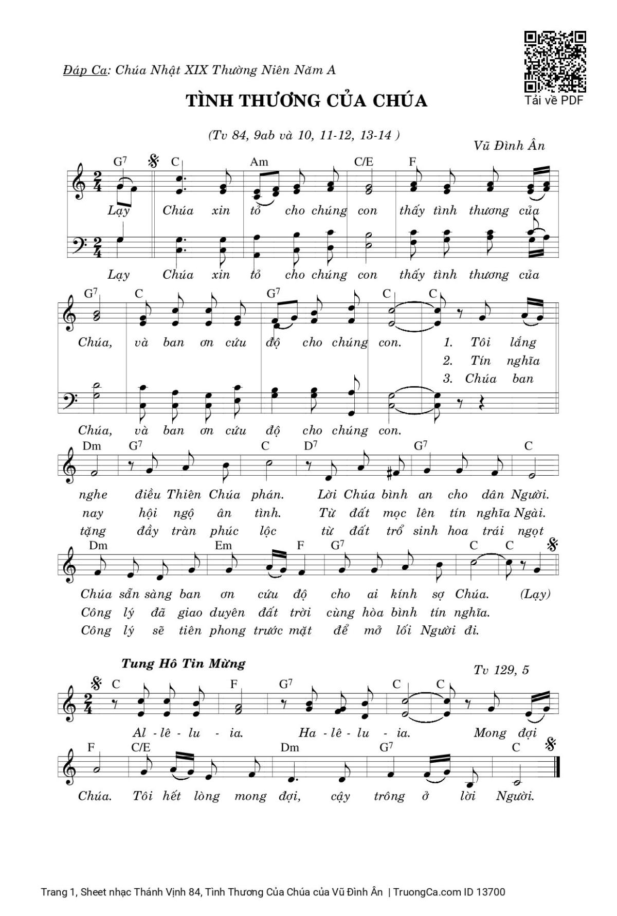 The Videos/audios Thánh Vịnh 84, Tình Thương Của Chúa by Vũ Đình Ân were embed from Youtube, Musescore or the other 3rd links. Videos are subject to 3rd's copyright control and may be removed by YouTube's copyright rules and 3rd's policies or maybe included advertisements. If you cannot access to these songs, this mean that have been removed.