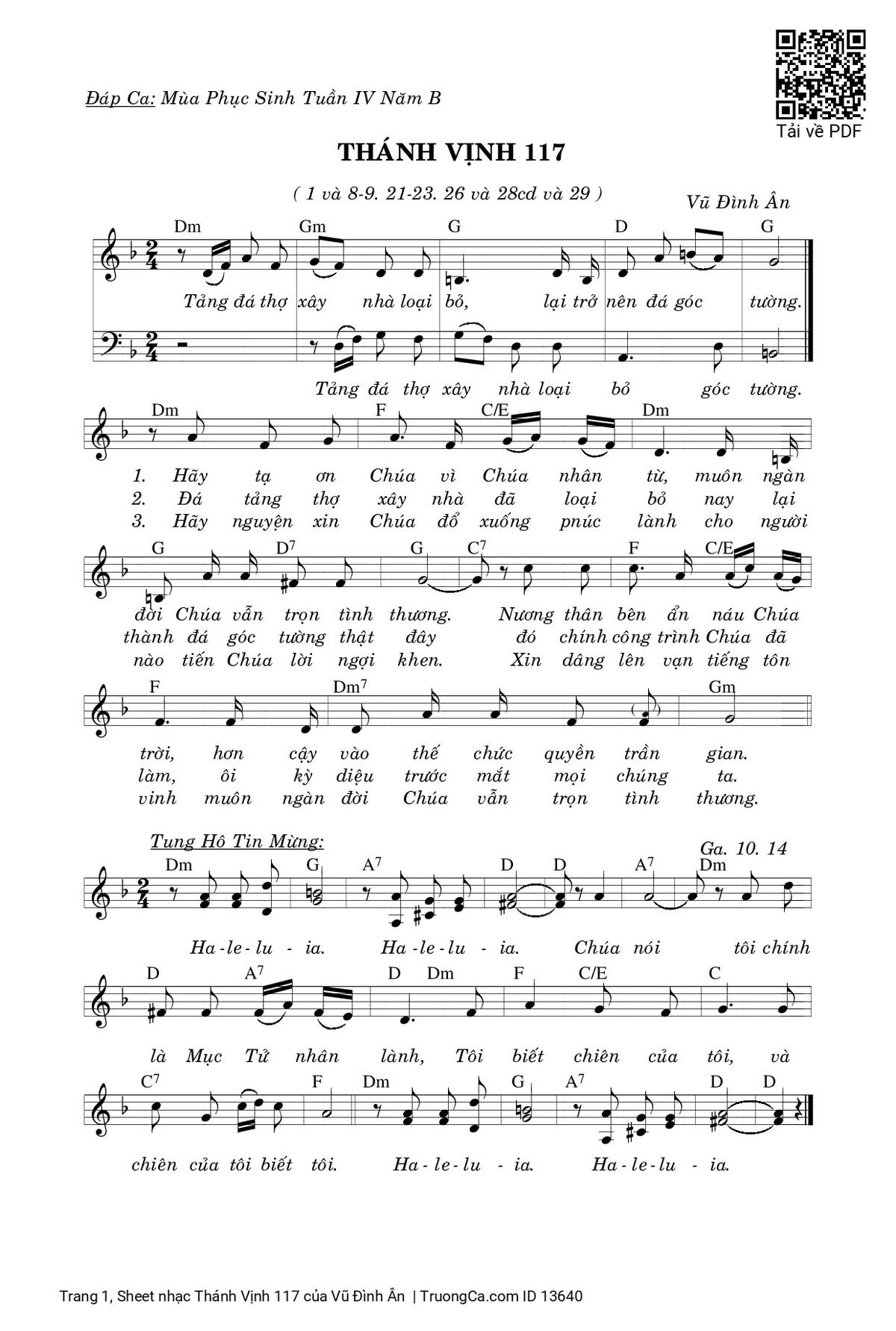 Vũ Đình Ân Ca Chúa Nhật B Phục Sinh Tảng đá thợ xây nhà loại bỏ [PDF] [Sheet] [Lyrics] [Mp4/Midi]