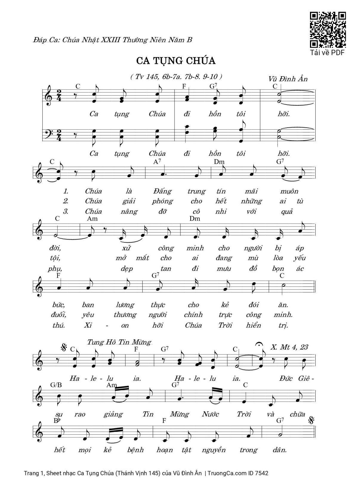 More similar sheets PDF Ca Tụng Chúa (Thánh Vịnh 145):