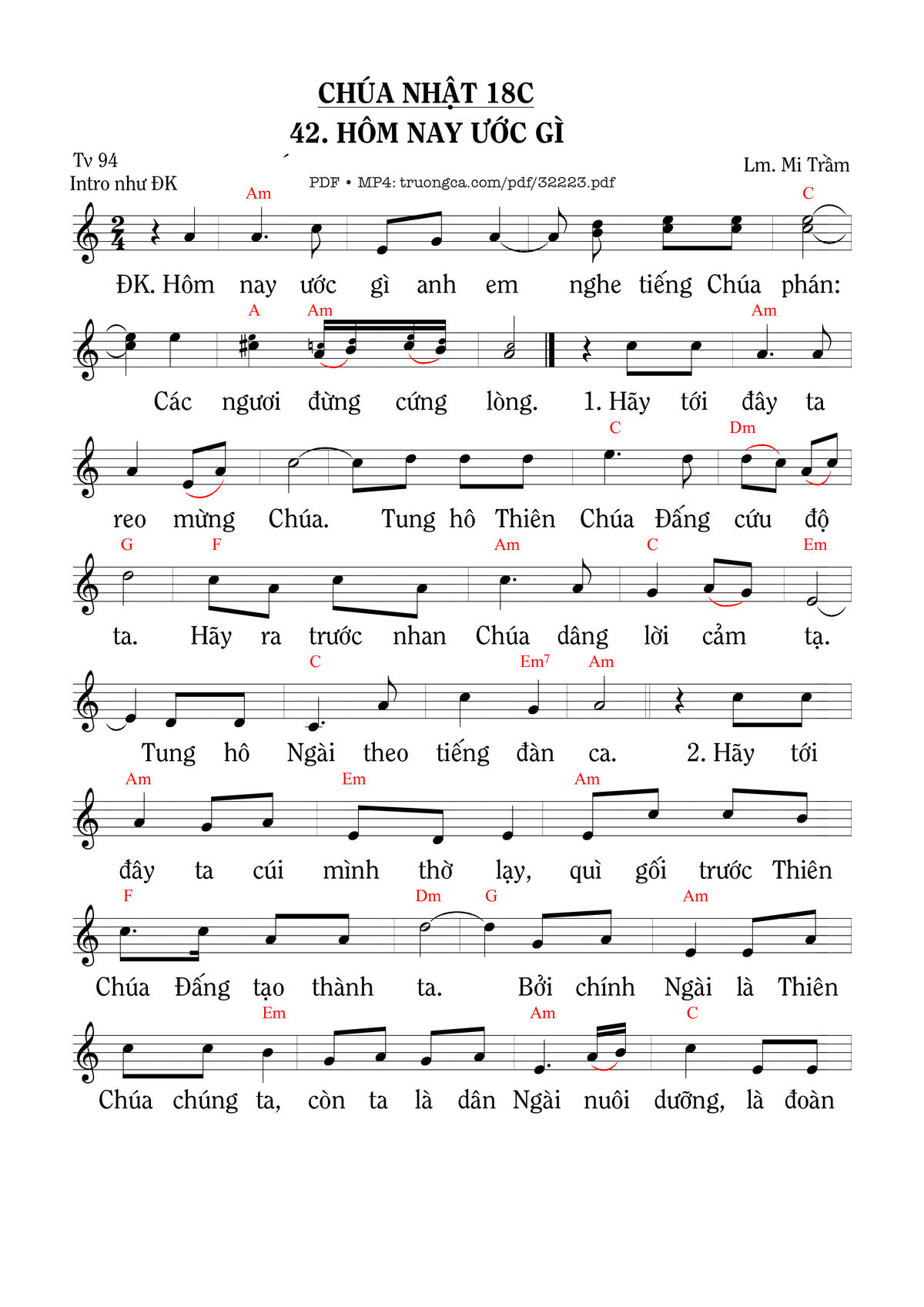 Mi Trầm Ca Chúa Nhật C Thường Niên Hôm nay ước gì anh em nghe tiếng Chúa phán Các ngươi đừng cứng lòng [PDF] [Sheet] [Lyrics] [Mp4/Midi]