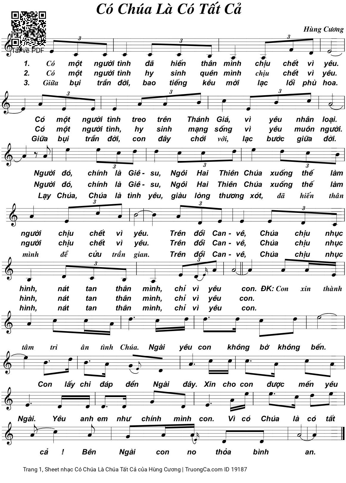 Hùng Cương Ca Nguyện Hiệp Lễ Có một người tình đã hiến thân mình chịu chết vì yêu [PDF] [Sheet] [Lyrics] [Mp4/Midi]