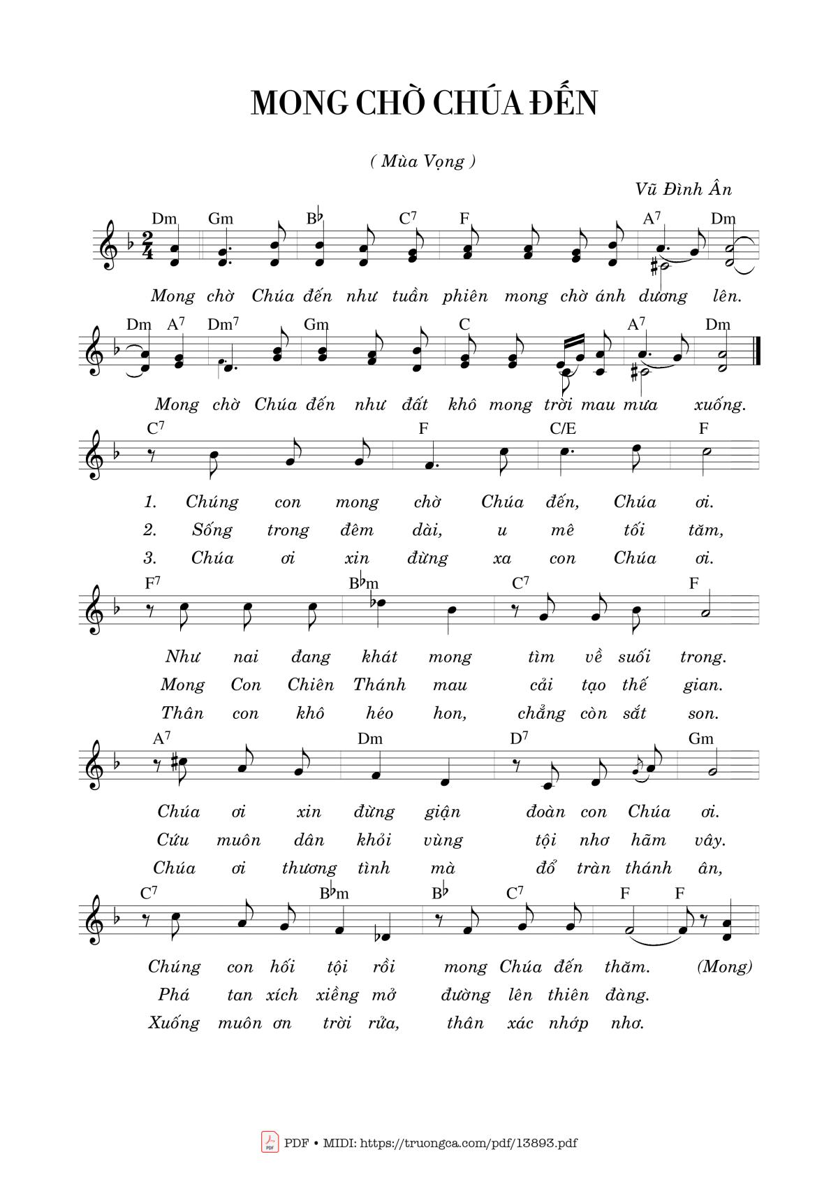 Vũ Đình Ân Ca nguyện Mùa Vọng Mong chờ Chúa đến như tuần phiên mong chờ ánh dương lên [PDF] [Sheet] [Lyrics] [Mp4/Midi]