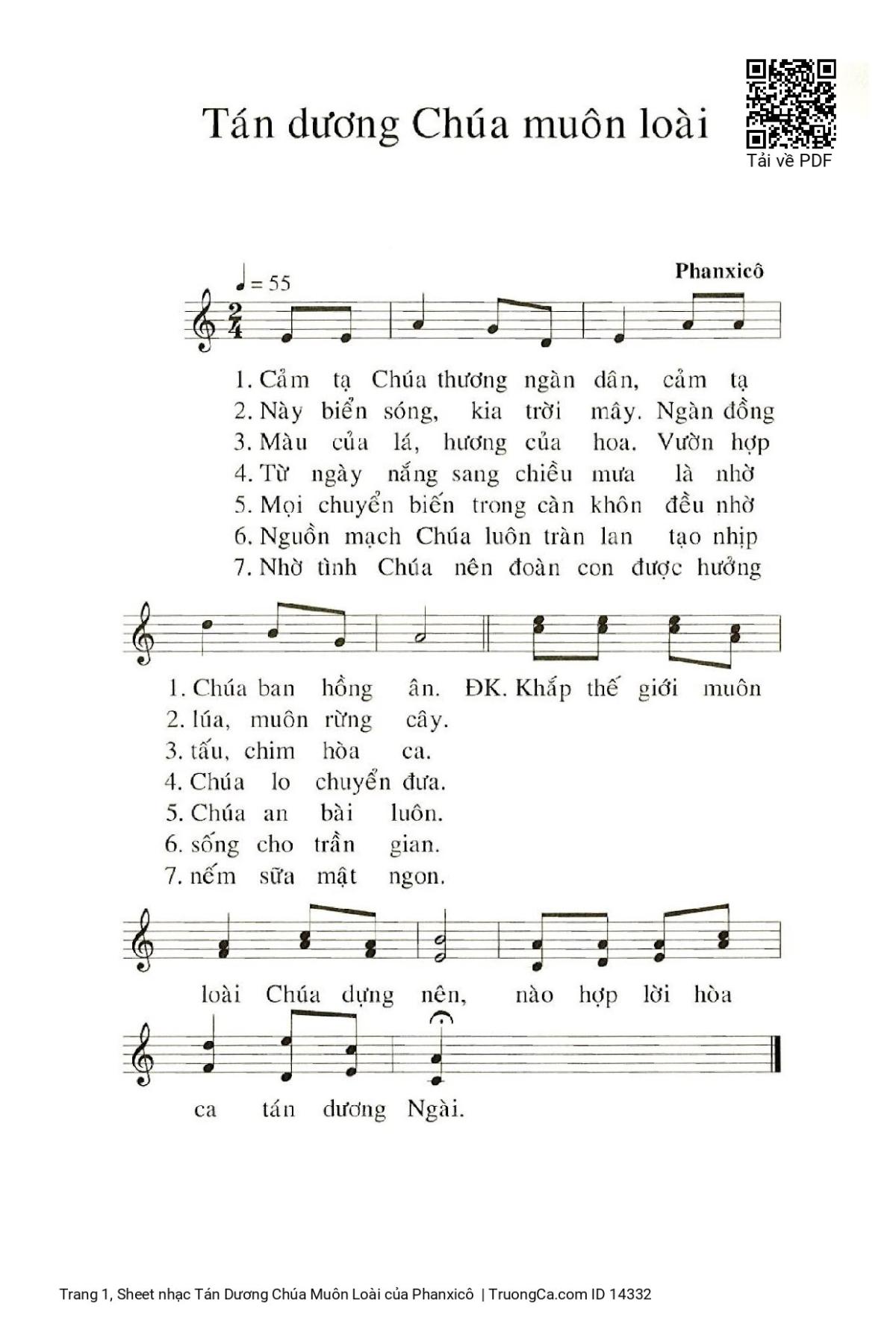 More similar sheets PDF Tán Dương Chúa Muôn Loài: