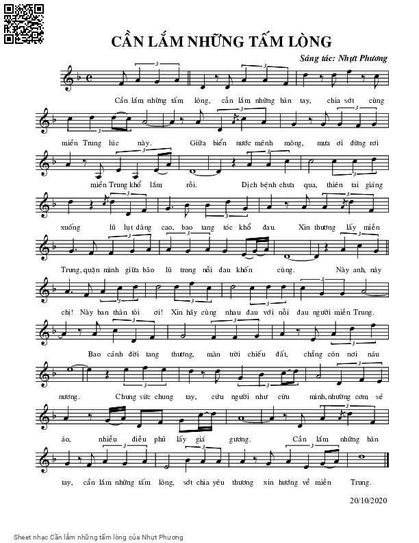 Nhựt Phương Cần lắm những tấm lòng cần lắm những bàn tay [PDF] [Sheet] [Lyrics] [Mp4/Midi]