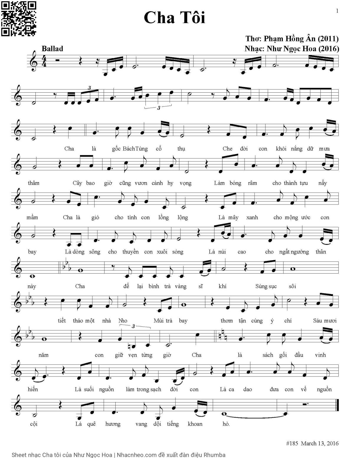 Như Ngọc Hoa Cha là gốc Bách Tùng cổ thụ Che đời con khỏi nắng dữ mưa thâm [PDF] [Sheet] [Lyrics] [Mp4/Midi]