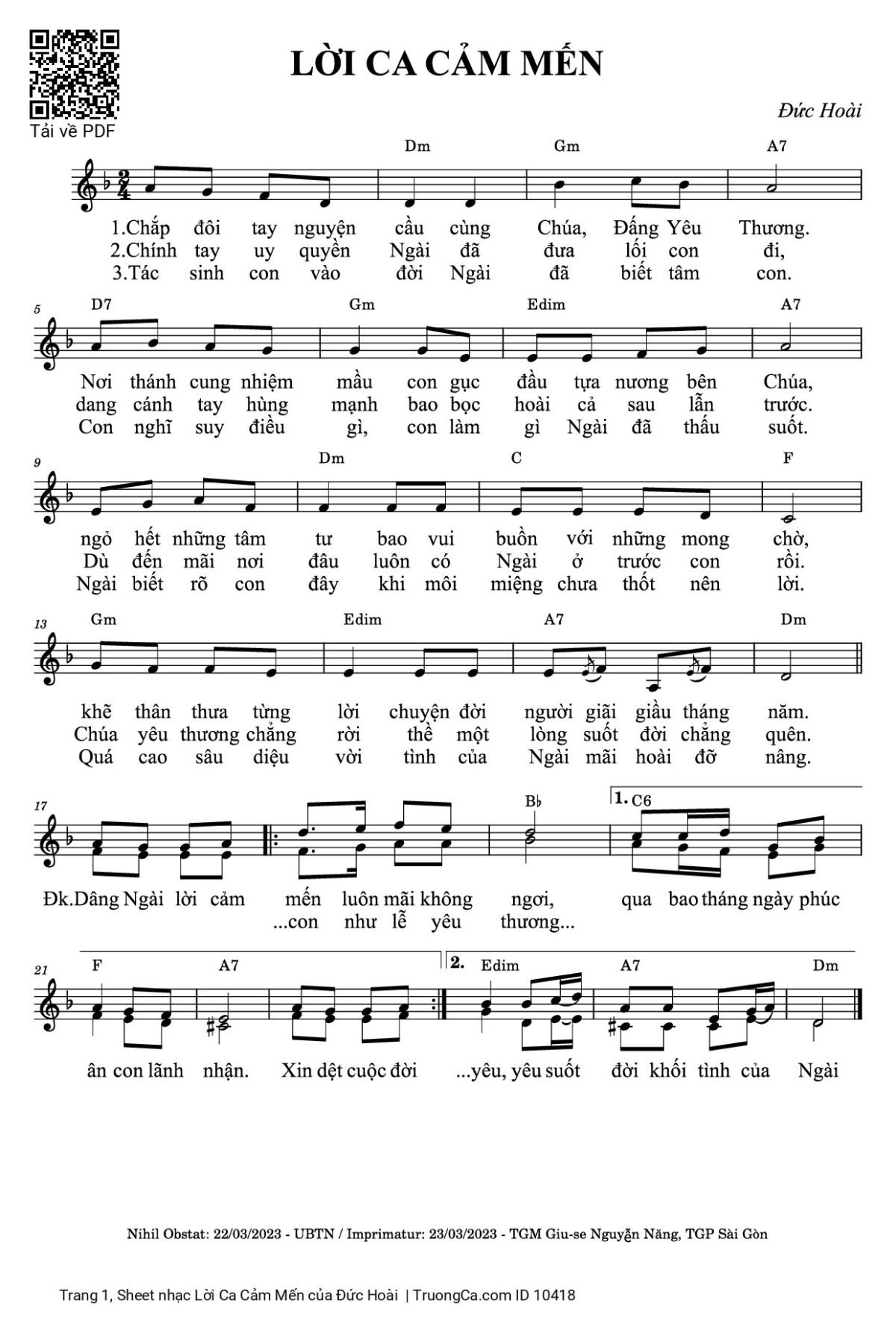 ÐK. Dâng Ngài lời cảm mến luôn mãi không ngơi, qua bao tháng ngày phúc ân con lãnh nhận. Xin dệt cuộc đời con như lễ yêu thương. Yêu, yêu suốt đời khối tình của Ngài.