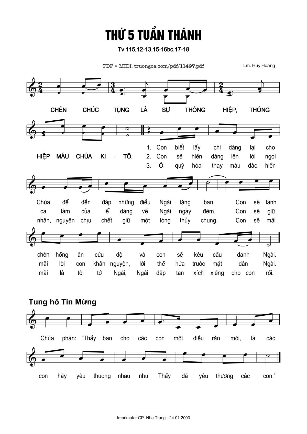 Huy Hoàng Chén chúc tụng là sự thông hiệp thông hiệp Máu Chúa Kitô [PDF] [Sheet] [Lyrics] [Mp4/Midi]