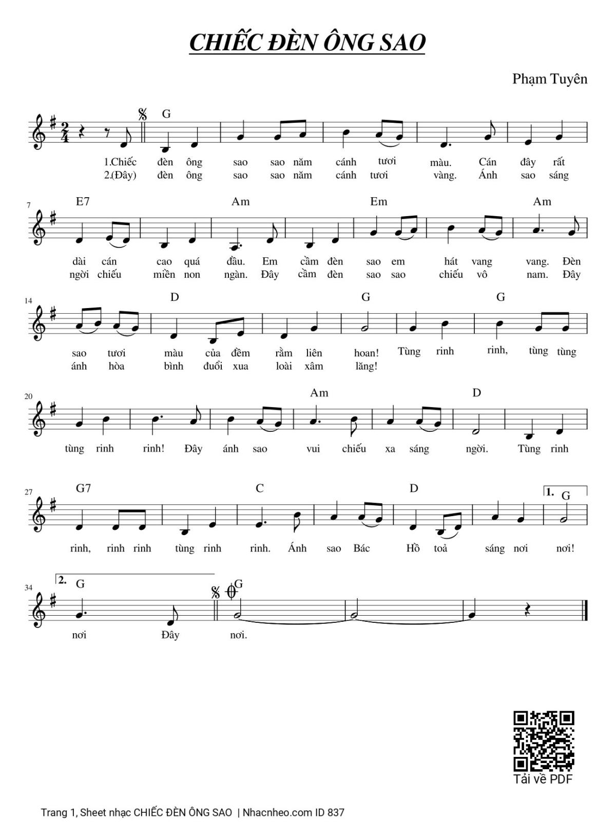 Phạm Tuyên Chiếc đèn ông sao sao năm cánh tươi màu [PDF] [Sheet] [Lyrics] [Mp4/Midi] [Story and comment]