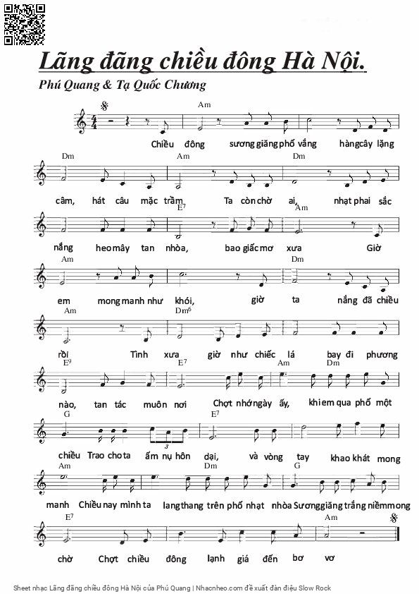 Phú Quang Chiều đông sương giăng phố vắng Hàng cây lặng câm [PDF] [Sheet] [Lyrics] [Mp4/Midi]