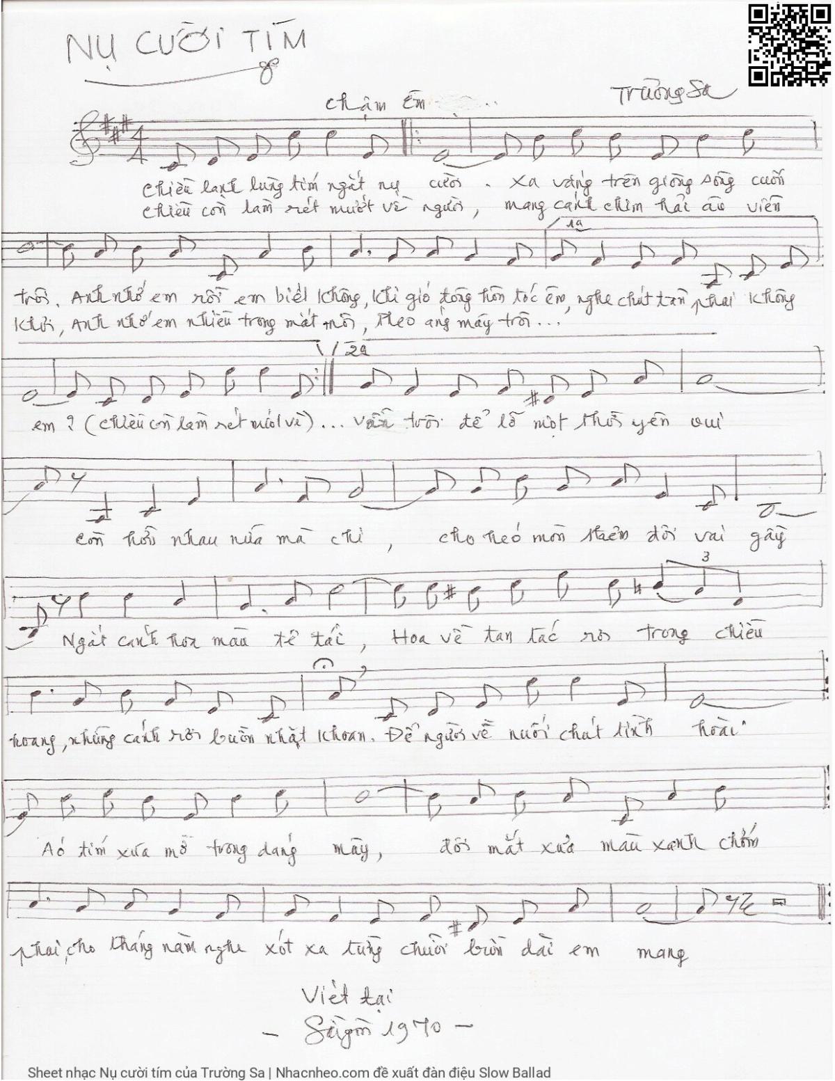 Transposition is the process of moving a song's melody and chords up or down in pitch by a constant interval. The direction of the transposition tool is indicated by a plus (+) sign for up and a minus (-) sign for down. Hover mouse over chords signs to see the chords chart of Nụ cười tím song.