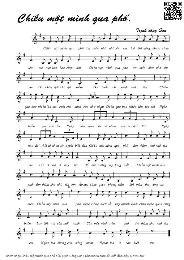 Trịnh Công Sơn Chiều một mình qua phố âm thầm nhớ nhớ tên em [PDF] [Sheet] [Lyrics] [Mp4/Midi]