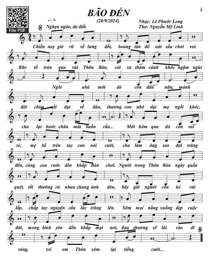 Lê Phước Long Chiều nay gió rít về lưng đồi Hoang tàn đổ nát sầu chơi vơi [PDF] [Sheet] [Lyrics] [Mp4/Midi]