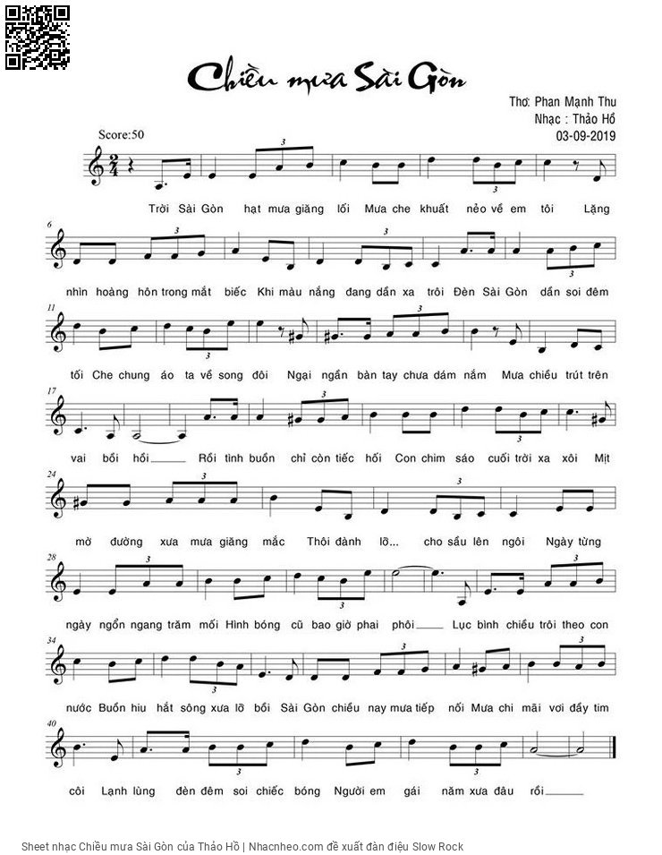 Thảo Hồ Chiều Sài Gòn hạt mưa giang lối Mưa che khuất nẻo về em tôi [PDF] [Sheet] [Lyrics] [Mp4/Midi]