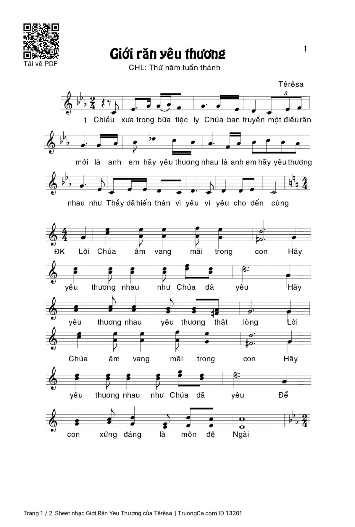 The Videos/audios Giới Răn Yêu Thương by Têrêsa were embed from Youtube, Musescore or the other 3rd links. Videos are subject to 3rd's copyright control and may be removed by YouTube's copyright rules and 3rd's policies or maybe included advertisements. If you cannot access to these songs, this mean that have been removed.