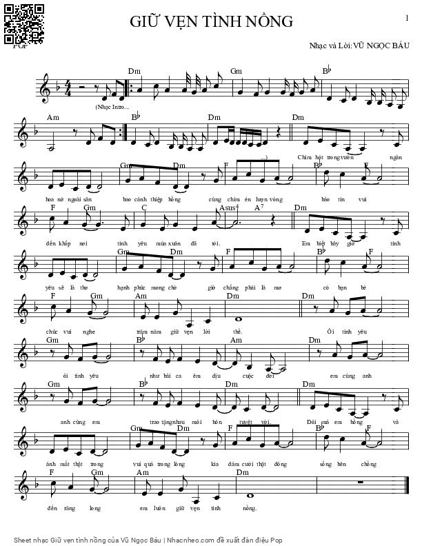 (Câu kết)... [Bb] Sống bên [F] nhau,đến trăm [Gm] năm,[Am] ta luôn giữ vẹn tình [Dm] nồng