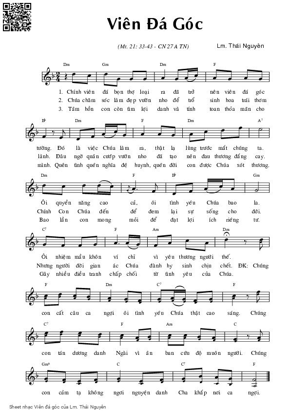 Lm. Thái Nguyên Chính viên đá bọn thợ loại ra đã trở nên viên đá góc tường [PDF] [Sheet] [Lyrics] [Mp4/Midi]