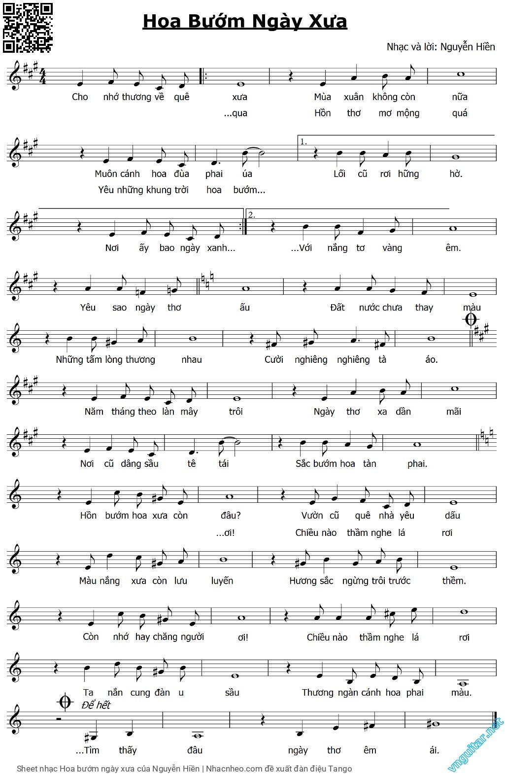 Nguyễn Hiền Cho nhớ thương về quê xưa Mùa xuân không còn nữa [PDF] [Sheet] [Lyrics] [Mp4/Midi]