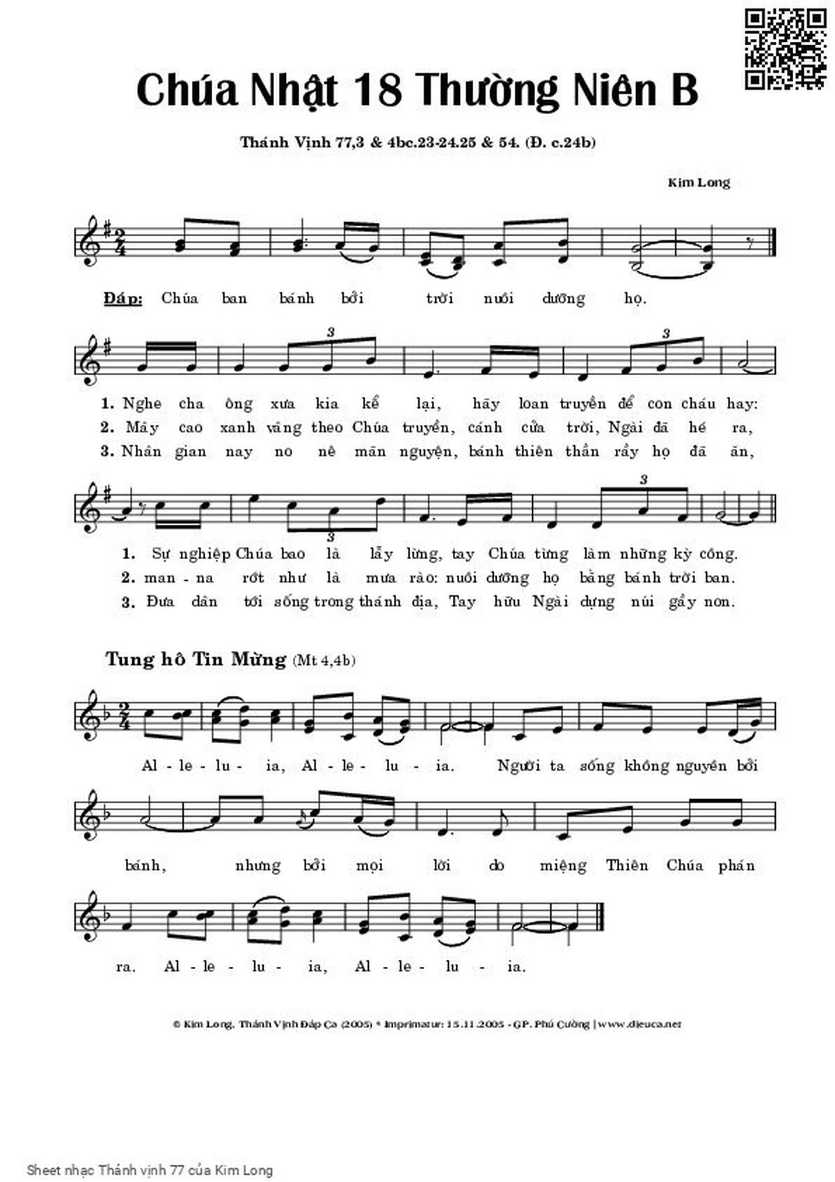 Kim Long Chúa ban bánh bởi trời nuôi dưỡng họ [PDF] [Sheet] [Lyrics] [Mp4/Midi]