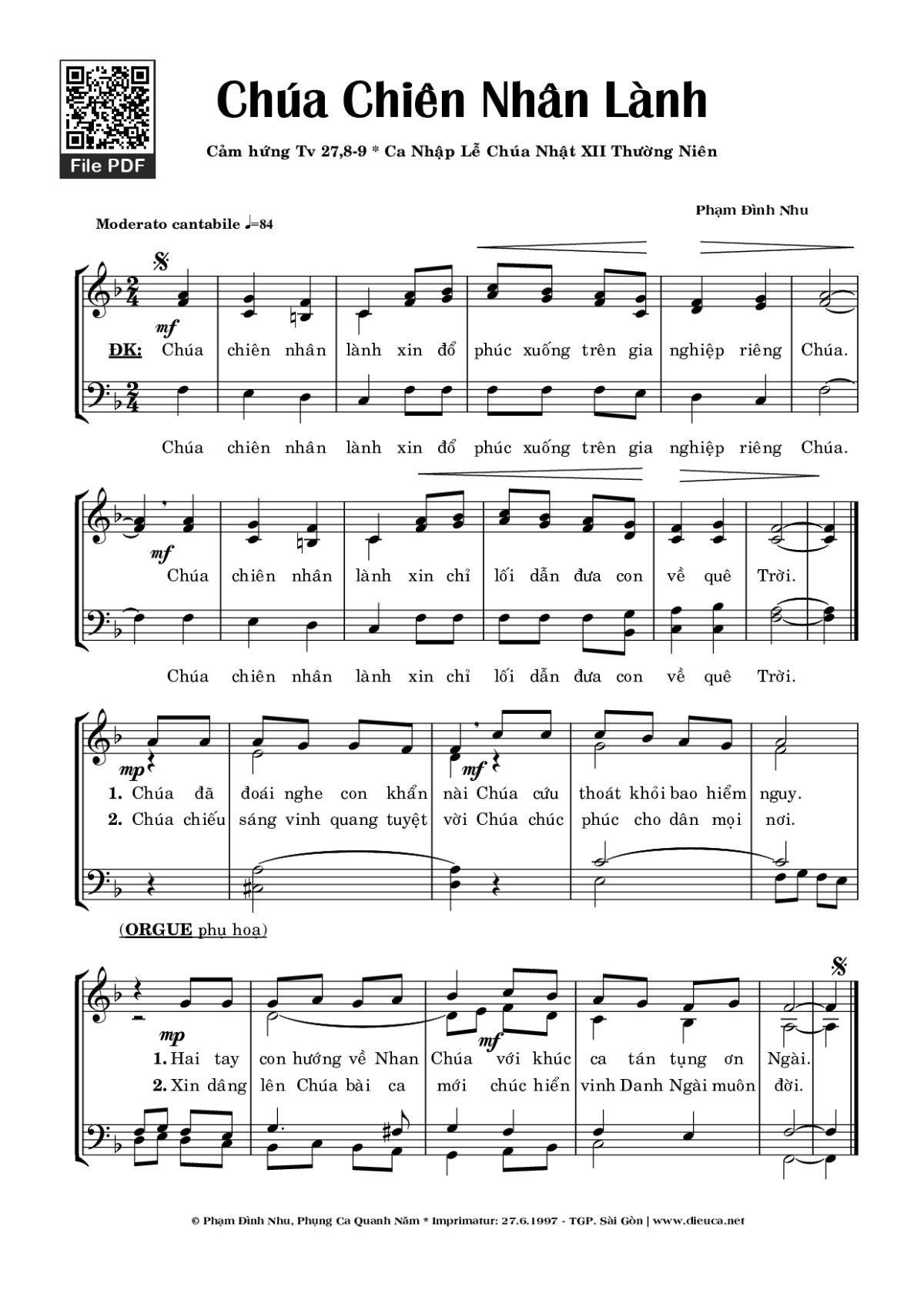 ĐK: Chúa chiên nhân lành xin đổ phúc xuống trên gia nghiệp riêng Chúa. Chúa chiên nhân lành xin chỉ lối dẫn đưa con về quê Trời.