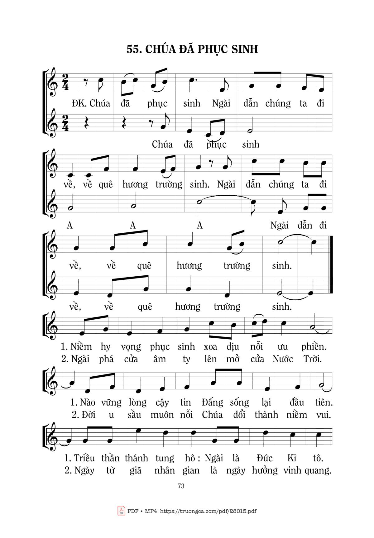 Điệp khúc. Chúa đã phục sinh Ngài dẫn chúng ta đi về, về quê hương trường sinh. Ngài dẫn chúng ta đi về, về quê hương trường sinh.