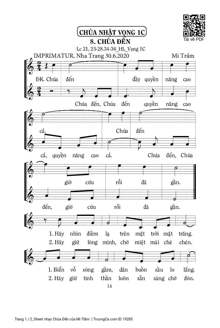 Mi Trầm Chúa đến đầy quyền năng cao cả Chúa đến giờ cứu rỗi đã gần [PDF] [Sheet] [Lyrics] [Mp4/Midi]