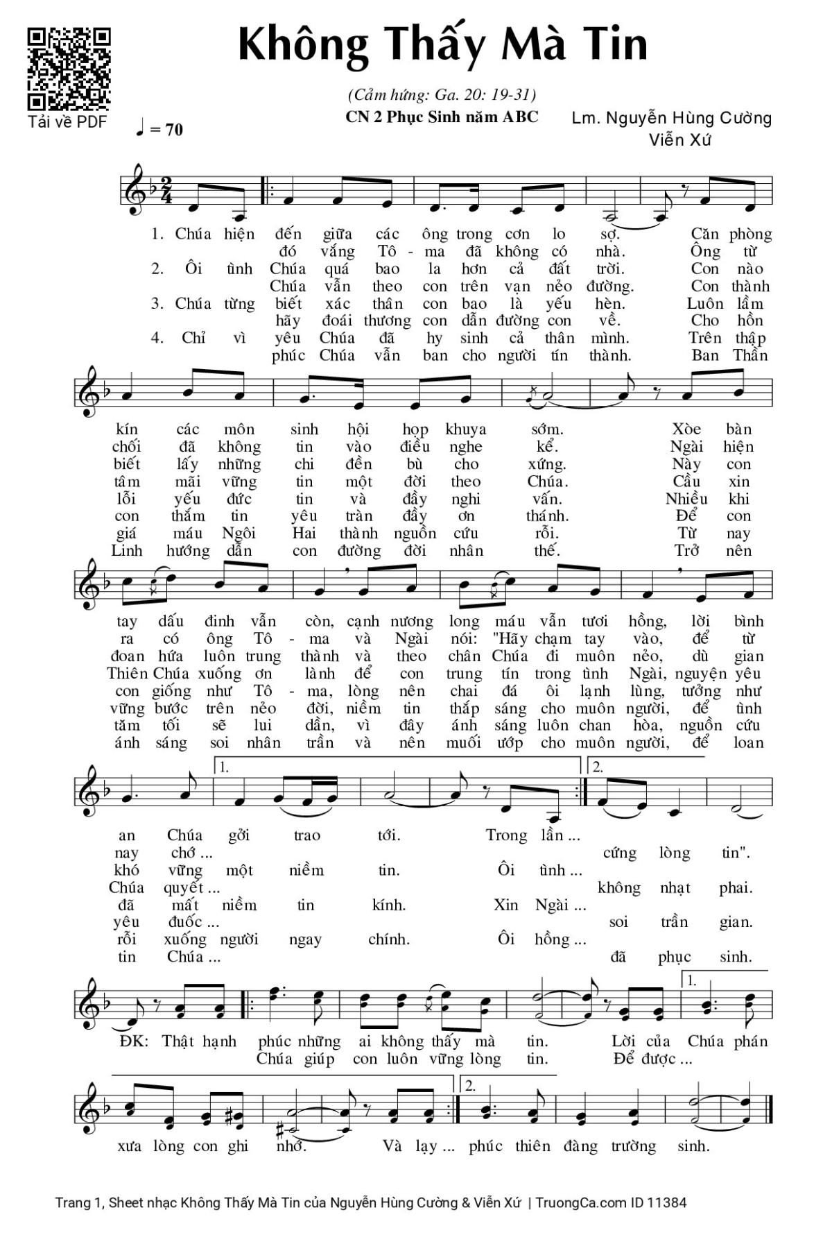Điệp khúc. Thật hạnh phúc những ai không thấy mà tin. Lời của Chúa phán xưa lòng con ghi nhớ. Và lạy Chúa giúp con luôn vững lòng tin. để được phúc thiên đàng trường sinh.