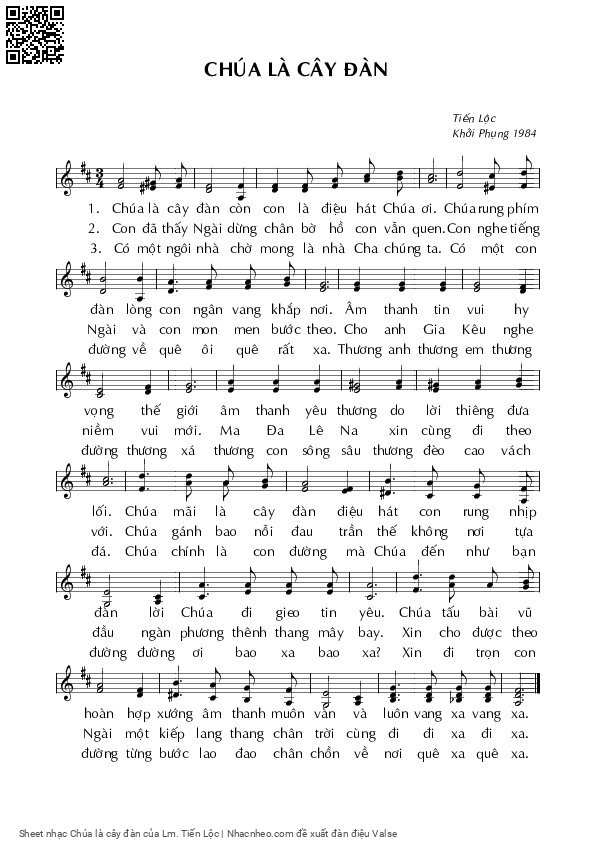 Lm. Tiến Lộc Chúa là cây đàn và con là điệu hát Chúa ơi [PDF] [Sheet] [Lyrics] [Mp4/Midi]