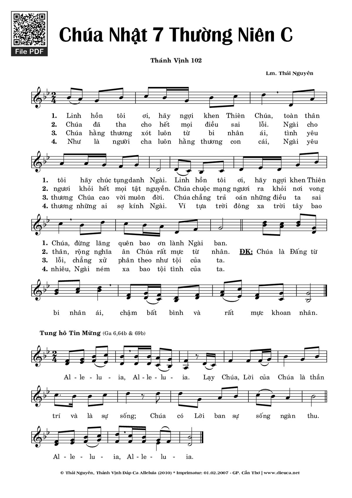 Category 🌾 Nhạc Thánh Ca, 🌾 Thánh Vịnh - Đáp Ca, 🌾 Thánh ca Imprimatur, ⛪ Chúa Nhật 7C Thường Niên, 🌾 Thánh Vịnh 102