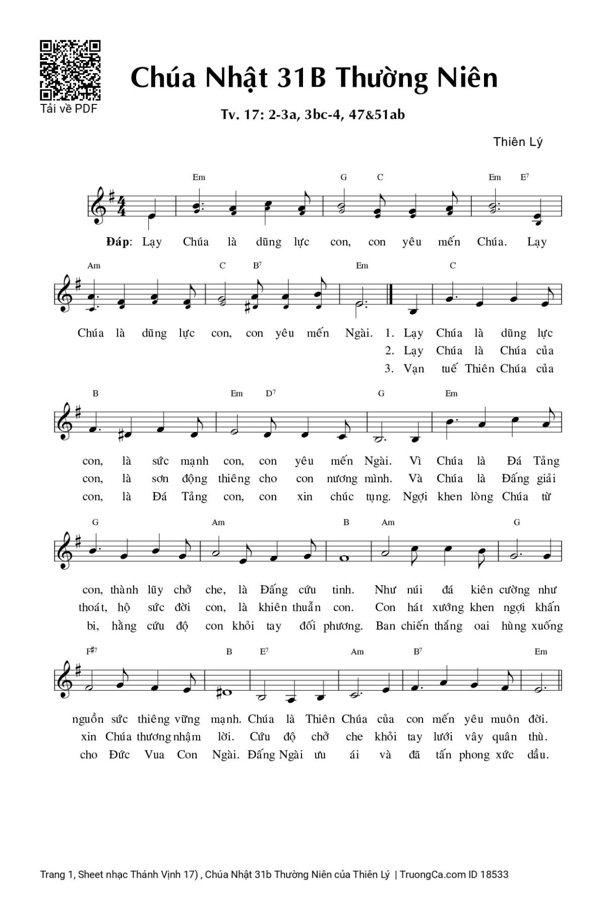 More similar sheets PDF Thánh Vịnh 17, Chúa Nhật 31b Thường Niên: