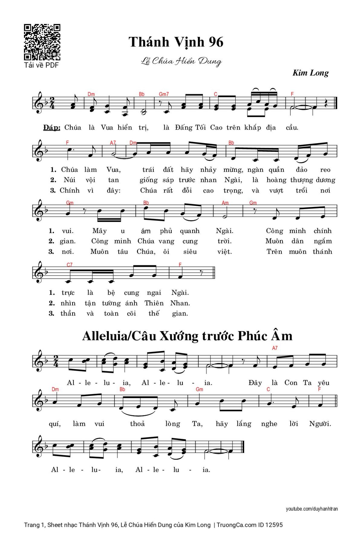 The Videos/audios Thánh Vịnh 96, Lễ Chúa Hiển Dung by Kim Long were embed from Youtube, Musescore or the other 3rd links. Videos are subject to 3rd's copyright control and may be removed by YouTube's copyright rules and 3rd's policies or maybe included advertisements. If you cannot access to these songs, this mean that have been removed.