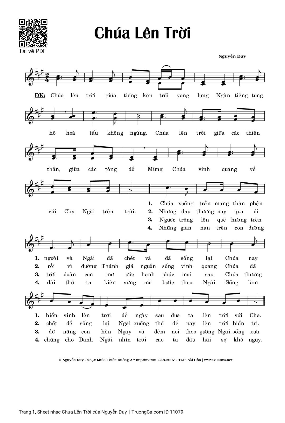The Videos/audios Chúa Lên Trời by Nguyễn Duy were embed from Youtube, Musescore or the other 3rd links. Videos are subject to 3rd's copyright control and may be removed by YouTube's copyright rules and 3rd's policies or maybe included advertisements. If you cannot access to these songs, this mean that have been removed.