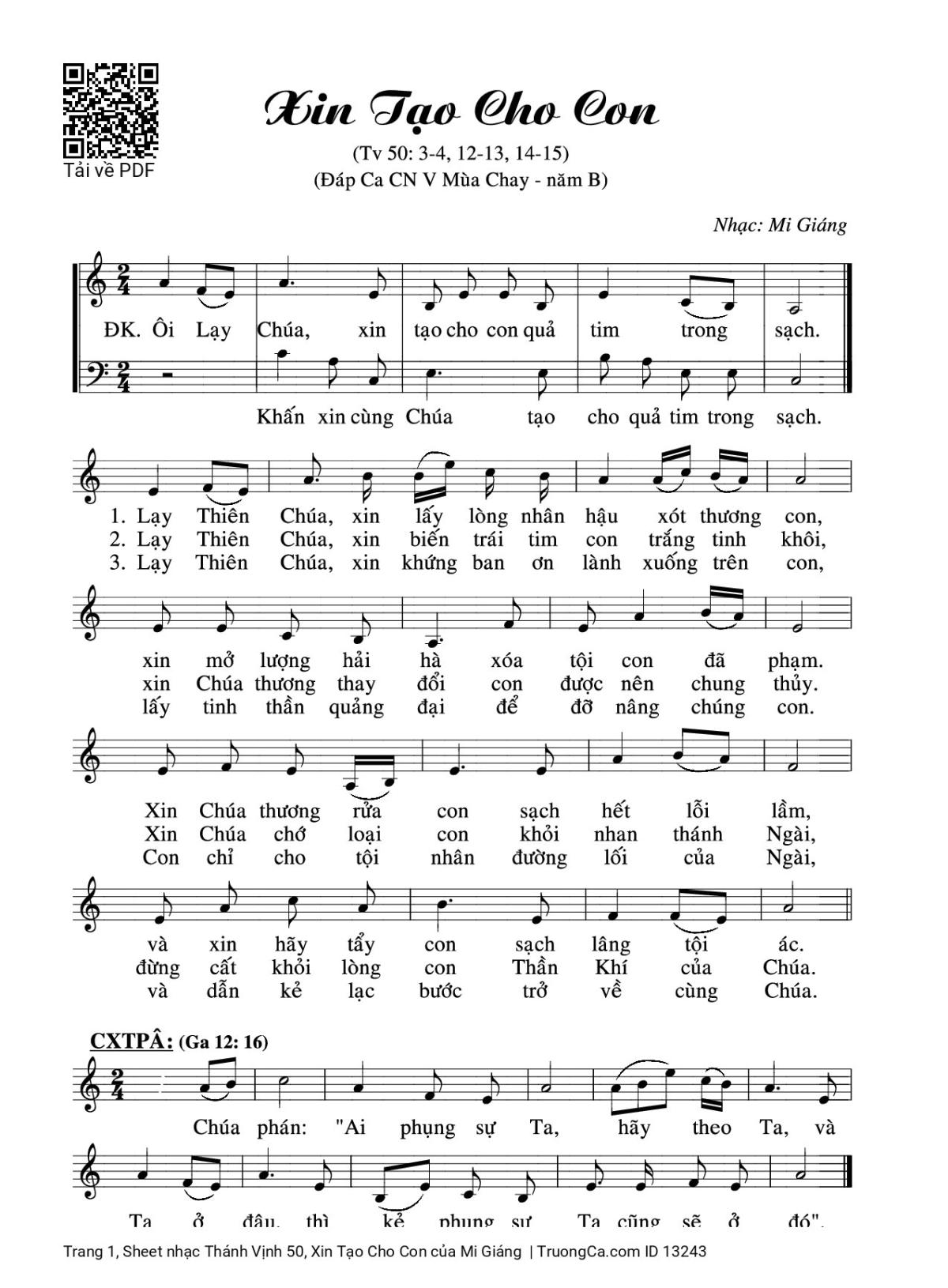 More similar sheets PDF Thánh Vịnh 50, Xin Tạo Cho Con: