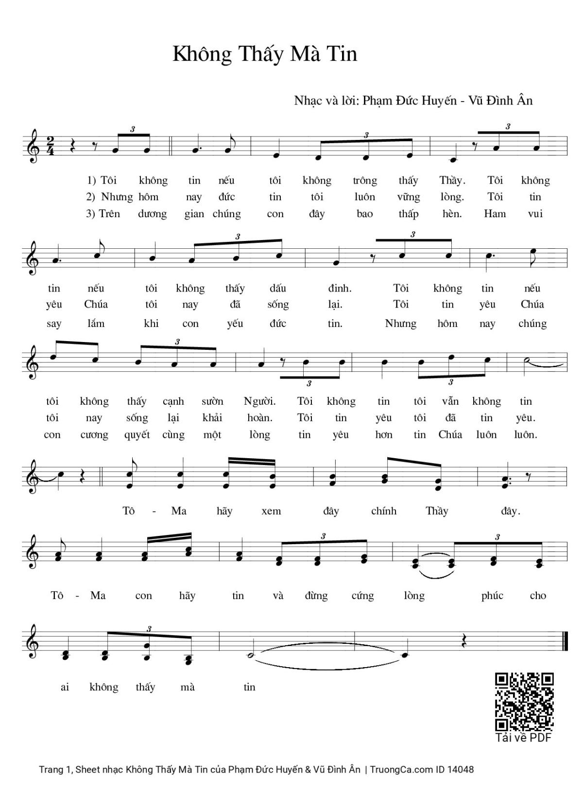 1. Tôi không tin nếu tôi không trông thấy Thầy. Tôi không tin nếu tôi không thấy dấu đinh. Tôi không tin nếu tôi không thấy cạnh sườn Người. Tôi không tin tôi vẫn không tin.