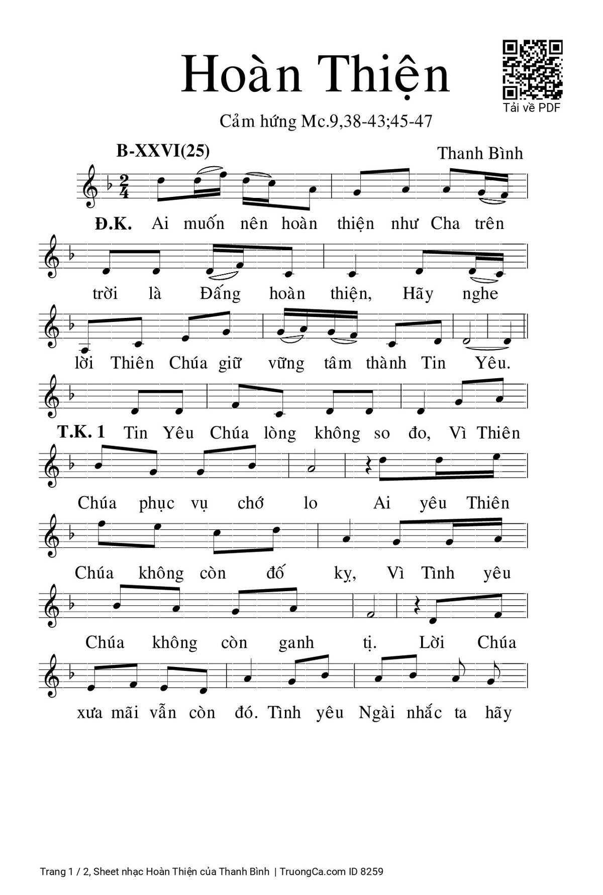 Transposition is the process of moving a song's melody and chords up or down in pitch by a constant interval. The direction of the transposition tool is indicated by a plus (+) sign for up and a minus (-) sign for down. Hover mouse over chords signs to see the chords chart of Hoàn Thiện song.