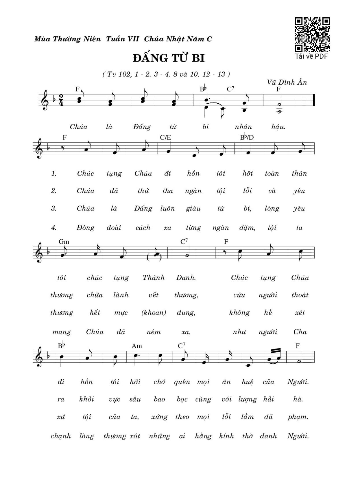 Vũ Đình Ân Chúa Nhật C Thường Niên Chúa là Đấng từ bi nhân hậu [PDF] [Sheet] [Lyrics] [Mp4/Midi]