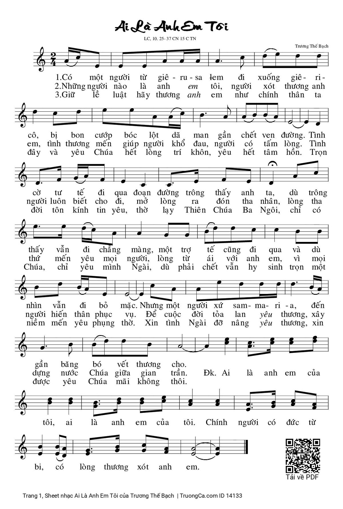 Trương Thế Bạch Chúa Nhật Thường NiênC Lc Những người nào là anh em tôi [PDF] [Sheet] [Lyrics] [Mp4/Midi]