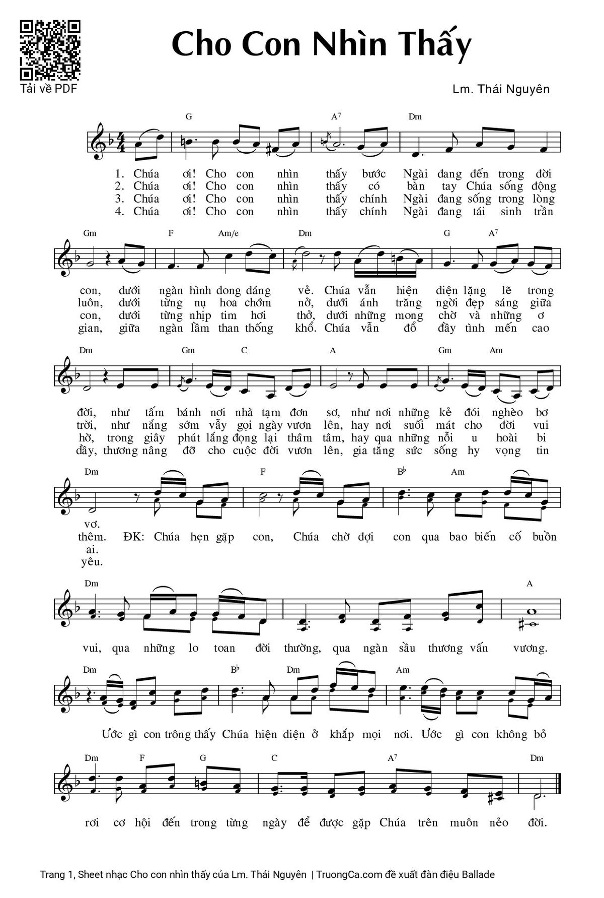 Lm. Thái Nguyên Chúa ơi cho con nhìn thấy [PDF] [Sheet] [Lyrics] [Mp4/Midi]