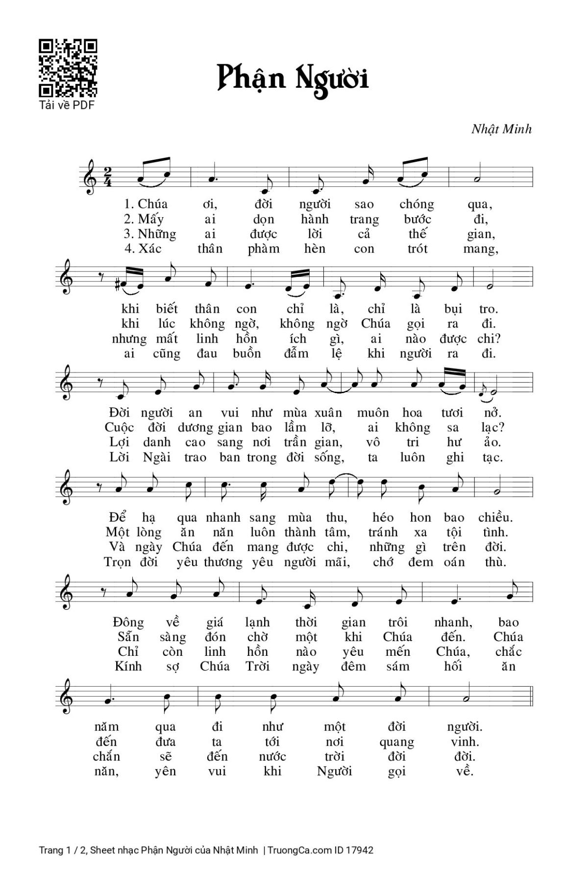 1. Chúa ơi, đời người sao chóng qua. Khi biết thân con chỉ là, chỉ là bụi tro. Đời người an vui như mùa xuân muôn hoa tươi nở. Để hạ qua nhanh sang mùa thu, héo hon bao chiều. Đông về giá lạnh thời gian trôi nhanh. Bao năm qua đi như một đời người.