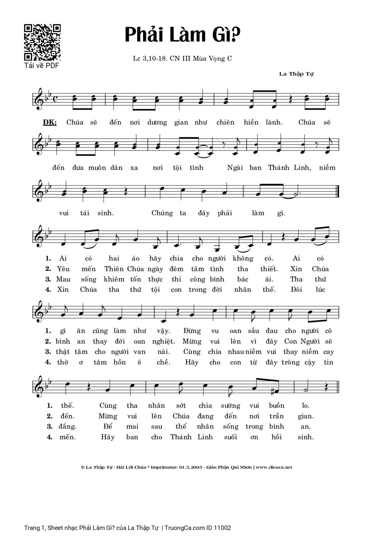 Điệp khúc: Chúa sẽ đến nơi dương gian như chiên hiền lành. Chúa sẽ đến đưa muôn dân xa nơi tội tình Ngài ban Thánh Linh, niềm vui tái sinh. Chúng ta đây phải làm gì.