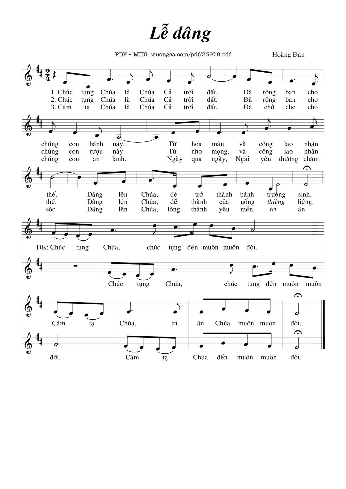 Transposition is the process of moving a song's melody and chords up or down in pitch by a constant interval. The direction of the transposition tool is indicated by a plus (+) sign for up and a minus (-) sign for down. Hover mouse over chords signs to see the chords chart of Lễ Dâng song.