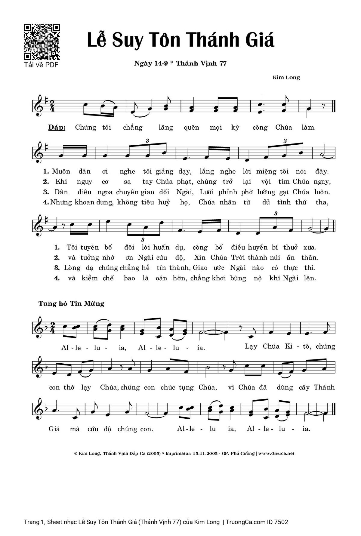 The Videos/audios Thánh Vịnh 77, Lễ Suy Tôn Thánh Giá by Kim Long were embed from Youtube, Musescore or the other 3rd links. Videos are subject to 3rd's copyright control and may be removed by YouTube's copyright rules and 3rd's policies or maybe included advertisements. If you cannot access to these songs, this mean that have been removed.